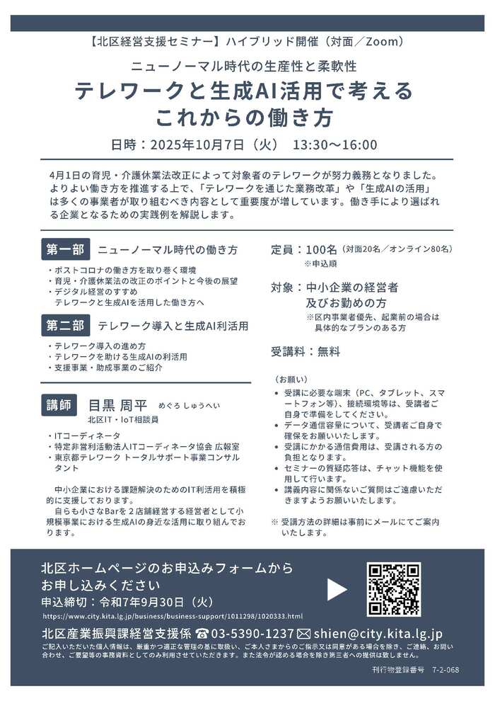 経営支援セミナー「ニューノーマル時代の生産性と柔軟性―テレワークと生成AI活用で考えるこれからの働き方」