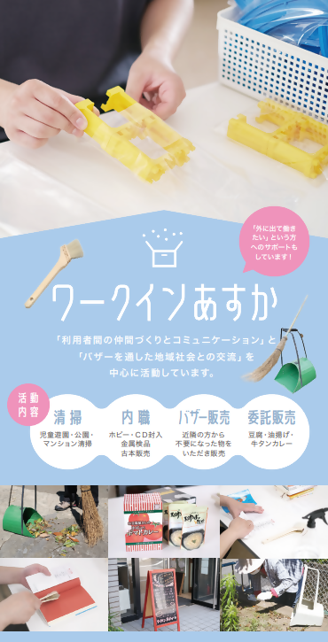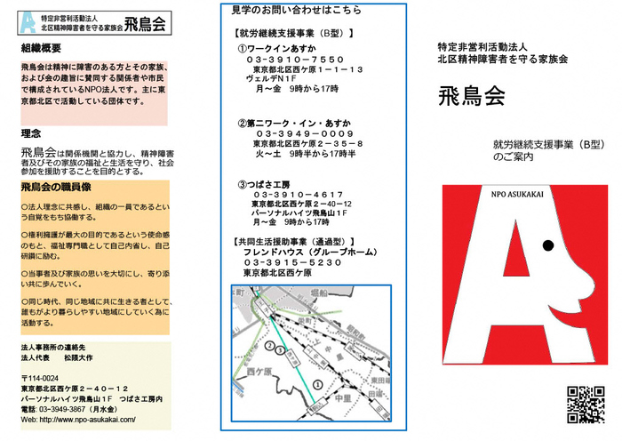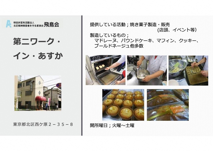 NPO法人北区精神障害者を守る家族会飛鳥会 ページ番号1025256 印刷大きな文字で印刷 ワーク・イン・あすか 第二ワーク・イン・あすか つばさ工房 関連情報 NPO法人北区精神障害者を守る家族会飛鳥会(外部リンク)